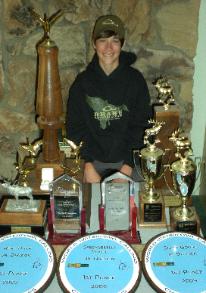 | The kid is unreal! He won 6 out of 8 contests on March 15th 2008 at the International Sportsman's Exposition in Salt Lake City Utah. Calling from 10AM to 10PM Greg Hubbell Jr got up on stage an amazing 18 times!!!! He ended the day winning the ISE Utah Adult ELk Calling Competition. "I am so proud of this little 12 year old champ!" Greg Sr. |